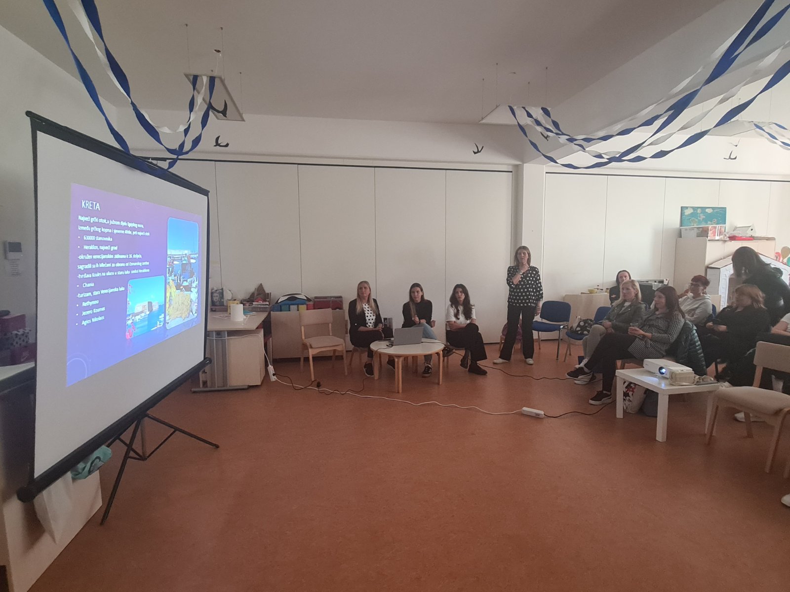 U sklopu Erasmus+ projekta, ostvarena je mobilnost (job shadowing) na Kreti u razdoblju od 07.04. do 14.04.2025. Dječji vrtić i osnovnu školu u glavnom gradu Krete, Heraklionu, posjetile su odgojiteljice Emilia Šimunović i Lea Kos, pedagoginja Korana Lisjak i ravnateljica Helena Ninković Budimlija. Tijekom mobilnosti stekle su uvid u grčki odgojno-obrazovni sustav, pratile rad odgojno-obrazovnih djelatnika, sudjelovale na satu engleskog jezika te u raznim aktivnostima vezano uz tradiciju i običaje otoka u vrijeme nadolazećeg blagdana Uskrsa.